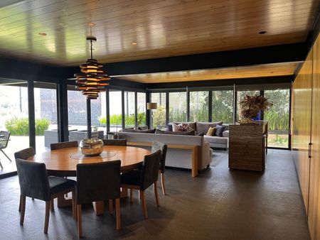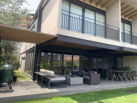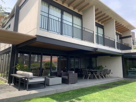 Acabados: Madera de Encino Americano en: carpintería, techos y plafones , madera de ingeniería en pisos de área de recámaras y family room, canceles de cristal templado, porcelanato en Baños, pisos de granito martelinado, paredes de concreto, luz indirecta, cisterna, vigas de madera, conexión para autos eléctricos.